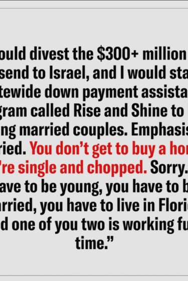 - EO #3: Single-Family Home Ban — Prohibit Blackstone, private equity firms, Airbnb speculators, and foreign nationals from buying single-family homes, reserving them for Floridians and young families.